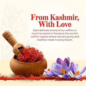 Experience the luxury and purity of handpicked Kashmiri Mongra Saffron, sourced directly from the pristine valleys of Kashmir. Known as Kumkuma Puvvu (Telugu) / Keshar (Hindi), this saffron is 100% pure, natural and unadulterated making it perfect for health, wellness and rituals.
